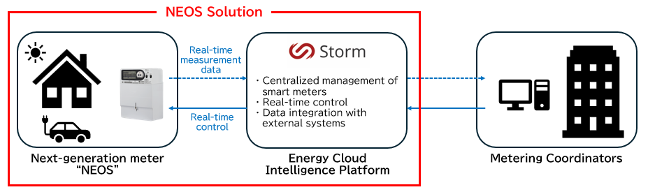 - “NEOS Solution” consists of the next-generation smart meter “NEOS,” equipped with edge intelligence functionality, and “Storm” Energy Cloud Intelligence Platform.