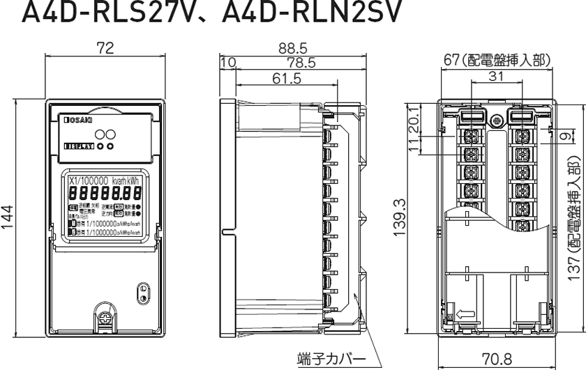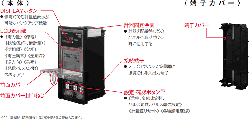 | 通信項目 | 有効電力量(順潮流/逆潮流)、瞬時有効電力、 力率、電流、電圧、30分値 |