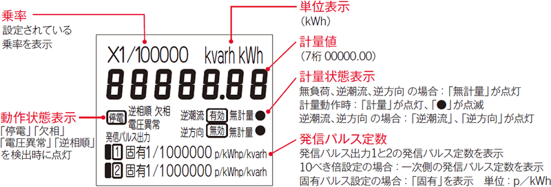 | パルス定数 | 10~{n} (pulse/kWh) |