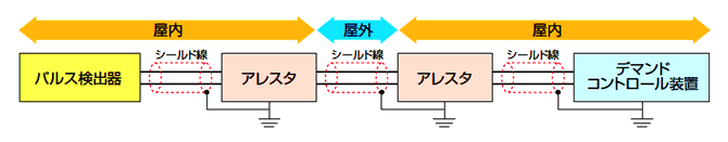 パルス入力線を屋外に敷設する場合は、信号回路用アレスタをつけることをおすすめします。