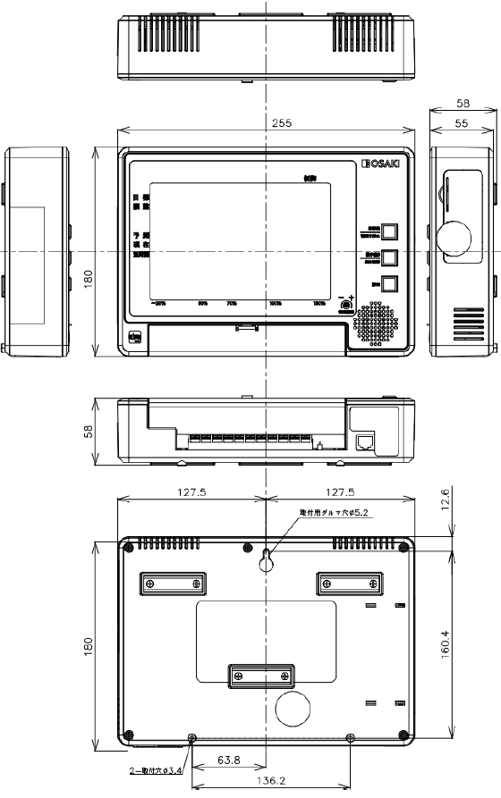 | 外形寸法(mm) | 255(W)×180(H)×58(D) |