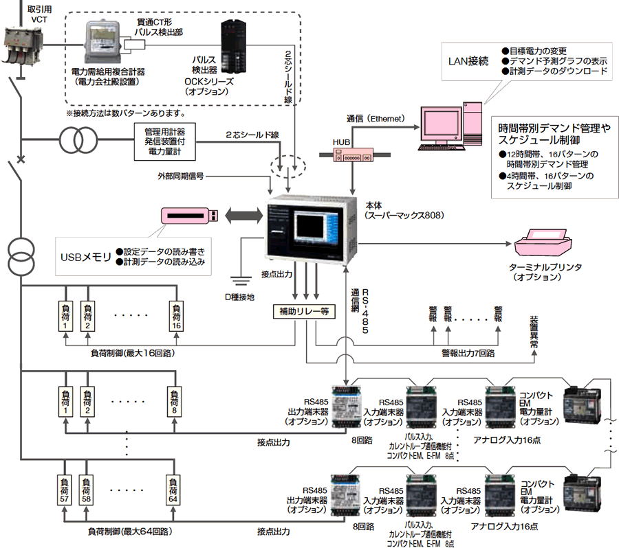 | 省エネ支援機能 | デマンド負荷制御回路 | 16回路、最大64回路(オプション) | |