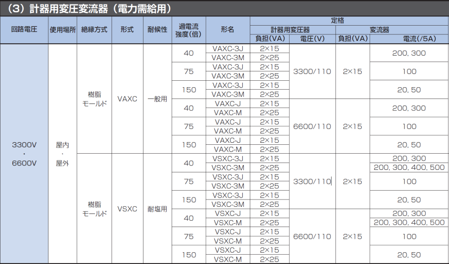 | 最高電圧(kV) | 0.23 | 0.46 | 1.15 | 3.45 | 6.9 |