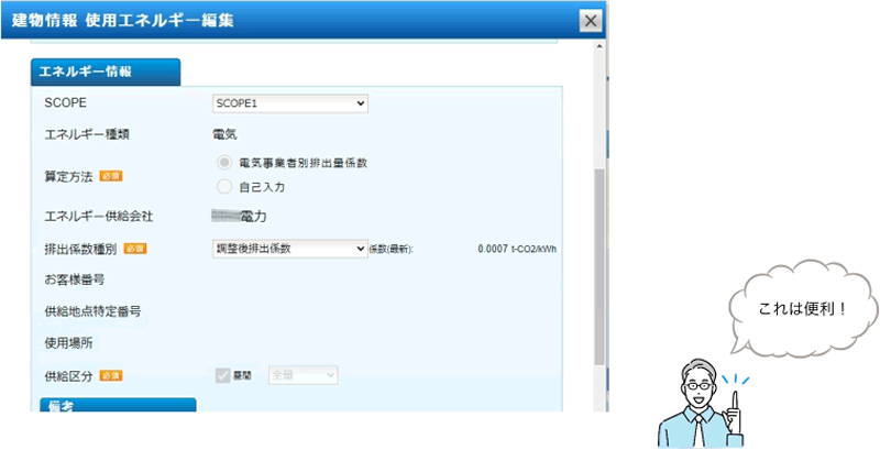 毎年変わるCO2排出量係数を自動更新。最新年度のデータでも換算可能