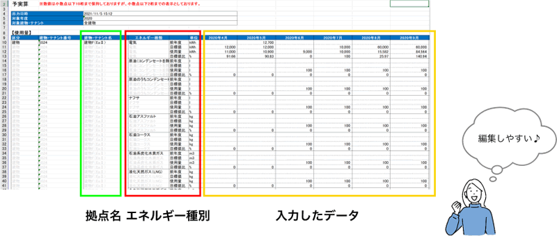毎月の各エネルギーデータを、請求書情報から入力します。