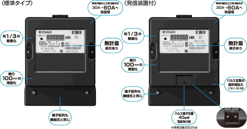◎屋内耐候形となります。屋外への設置は防水箱に入れてください。 ◎/5Aのパルス定数は、4種類の定数に乗率を除算した選択が可能です。 (例 : 乗率 × 10 の場合 ・・・・ 1/100、1/10、1、10) ◎端子ねじは30A、60A、/5Aにつき、プラスドライバー、マイナスドライバー兼用。(120Aのみマイナスドライバー)