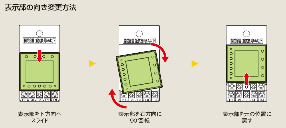 表示部回転機構により、表示部を4方向に回転できますので、常に正面から読み取ることができます。
