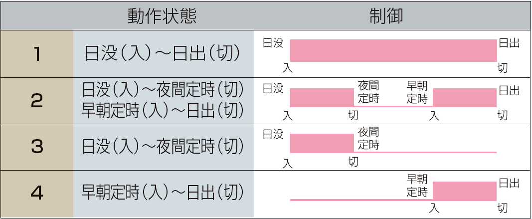 公園・駐車場等の照明、街路灯、ネオン灯、看板照明や電照栽培など、夕方に点灯させて日の出に消灯させるといった制御に最適です。