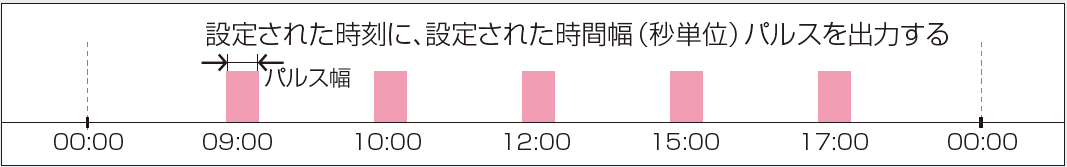 あらかじめ設定された時刻に入(ON)および切(OFF)の制御をします。日渡り制御も可能です。