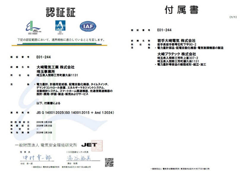 ISO14001の認証取得割合は、大崎電気グループ(国内)全体の93.1%です。(※2024年12月31日時点、人員比率により算出)
